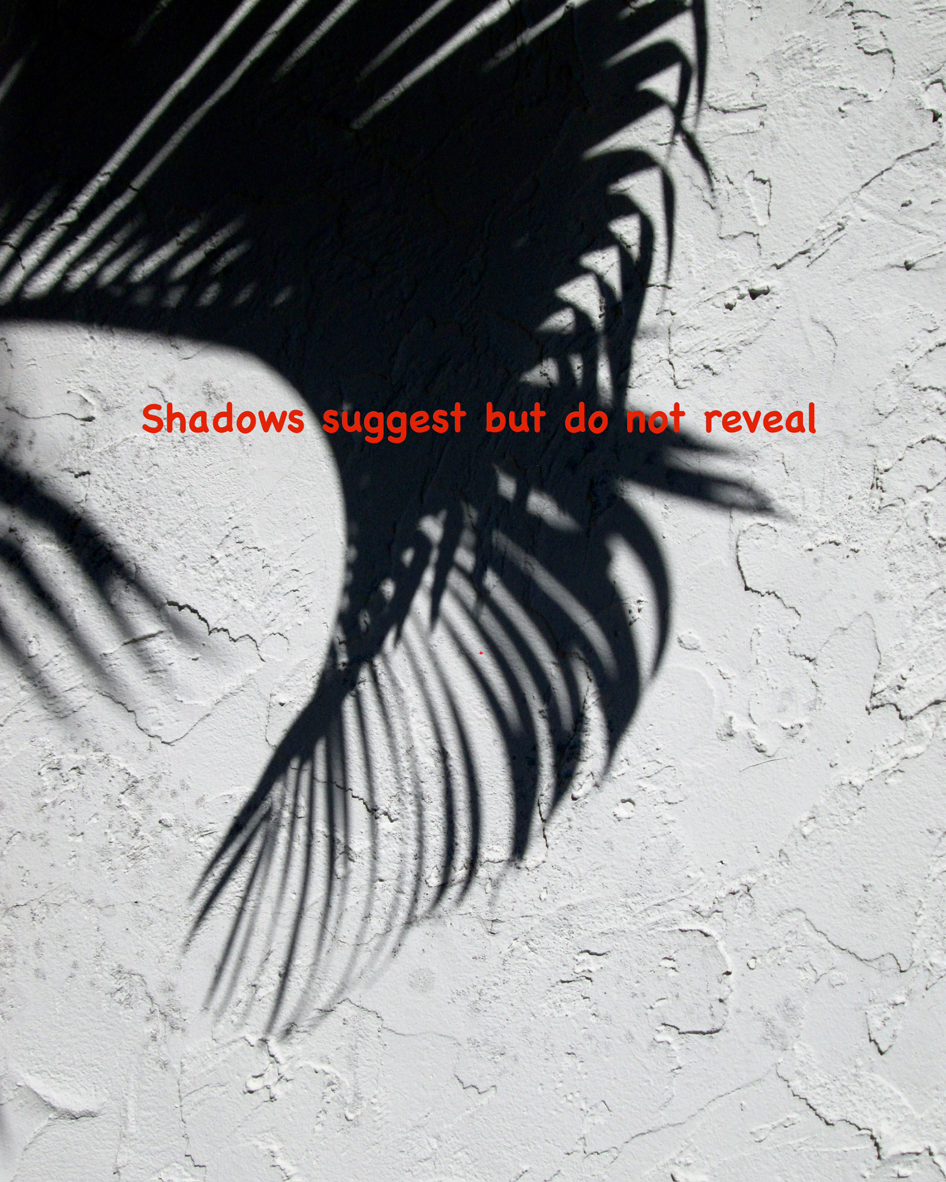 Photography is “light writing.” To me nothing speaks more clearly of this than shadows, a hint of something, suggestion.